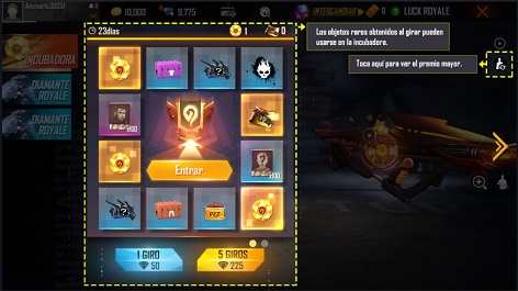 La Incubadora es el lugar donde podemos conseguir objetos exclusivos, para participar debemos recargar algunos diamantes por medio de los diferentes métodos seguros que Garena Free Fire tiene a disposición de sus jugadores u obtenerlos de manera gratuita.
